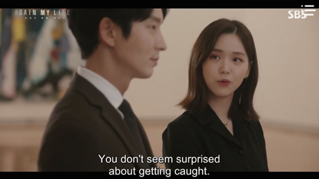 Many memorable scenes abound in Again My Life. The performances of the actors range from brilliant to something resembling utter perfection. The standout, without question, is Lee Joon Gi. Many scenes including action sequences which are filled with tremendous beauty and meaning are bound up with Kim Hee Woo, a titanic character bought to life by the formidable Lee Joon Gi, South Korea's best-loved and respected multihyphenate actor and entertainer. Lee’s natural charisma, powerful aura and magnetic presence on the screen resonate with the audience. His co-stars, many of whom are stars in their own rights, share screen time with him and make unforgettable scenes in the fantasy-political-legal-comedy-action Kdrama. Some of Kim Hee Woo's most interesting scenes are with Kim Hee Ah, his romantic pursuer. Kim Hee Woo’s relationship with Kim Hee Ah is intriguing. In the presence of indomitable, intelligent and independent Kim Hee Ah, Kim Hee Woo remains cool, respectful and cautious; he cares about her but does not encourage her affection for him. Kim Hee Woo and Kim Hee Ah’s romantic chemistry is palpable. There is an interesting amount of tension between them. Kim Hee Ah knows what she wants or desires, and she chases him but unfortunately, her love is unrequited. Kim Hee Woo’s powerful sense of mission underpins everything that he does. His dogged drive to punish Cho Tae Sub and his criminal lackeys prevents him from pursuing her. Kim Hee Ah, a competent young businesswoman of substance, dares to defy Cho Tae Sub, as shown in Episode 14. But she is not strong in the